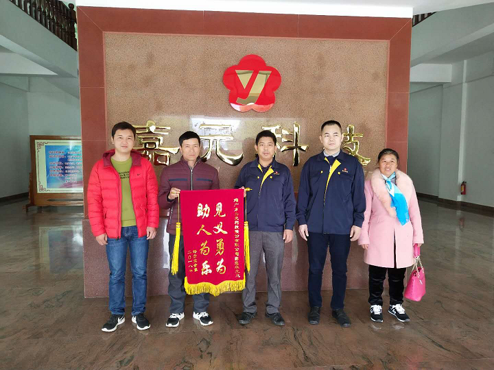 2019年1月3日上午,梅縣區(qū)丙村鎮(zhèn)群眾鄒明華夫婦,帶著一面繡有“救死扶傷·見義勇為”的錦旗送到廣東嘉元科技股份有限公司員工接送車駕駛員薛小林手中,以深深的感謝薛小林對(duì)其兒子鄒貴寶的救命之恩。
