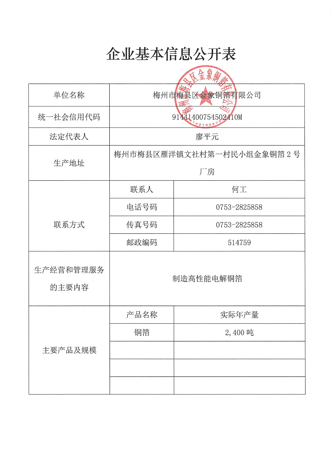 梅州市梅縣區(qū)金象銅箔有限公司系廣東嘉元科技股份有限公司的全資子公司,現(xiàn)將梅州市梅縣區(qū)金象銅箔有限公司國家排污許可證中固廢污染防治信息進(jìn)行公示。